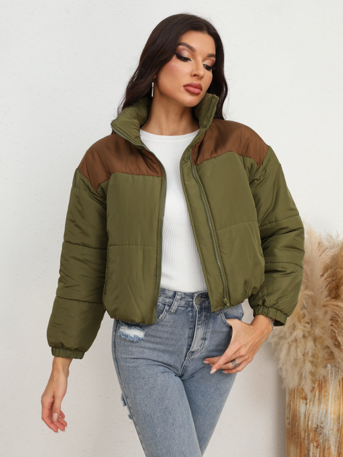 Two-Tone Zip-Up Puffer Jacket