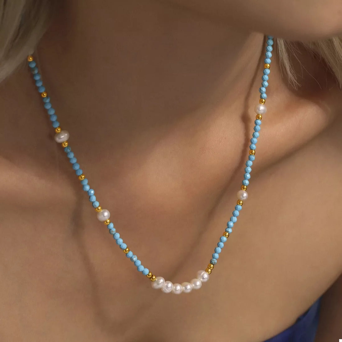 Embrace timeless bohemian elegance with this beautifully textured necklace. The combination of vibrant turquoise stones...