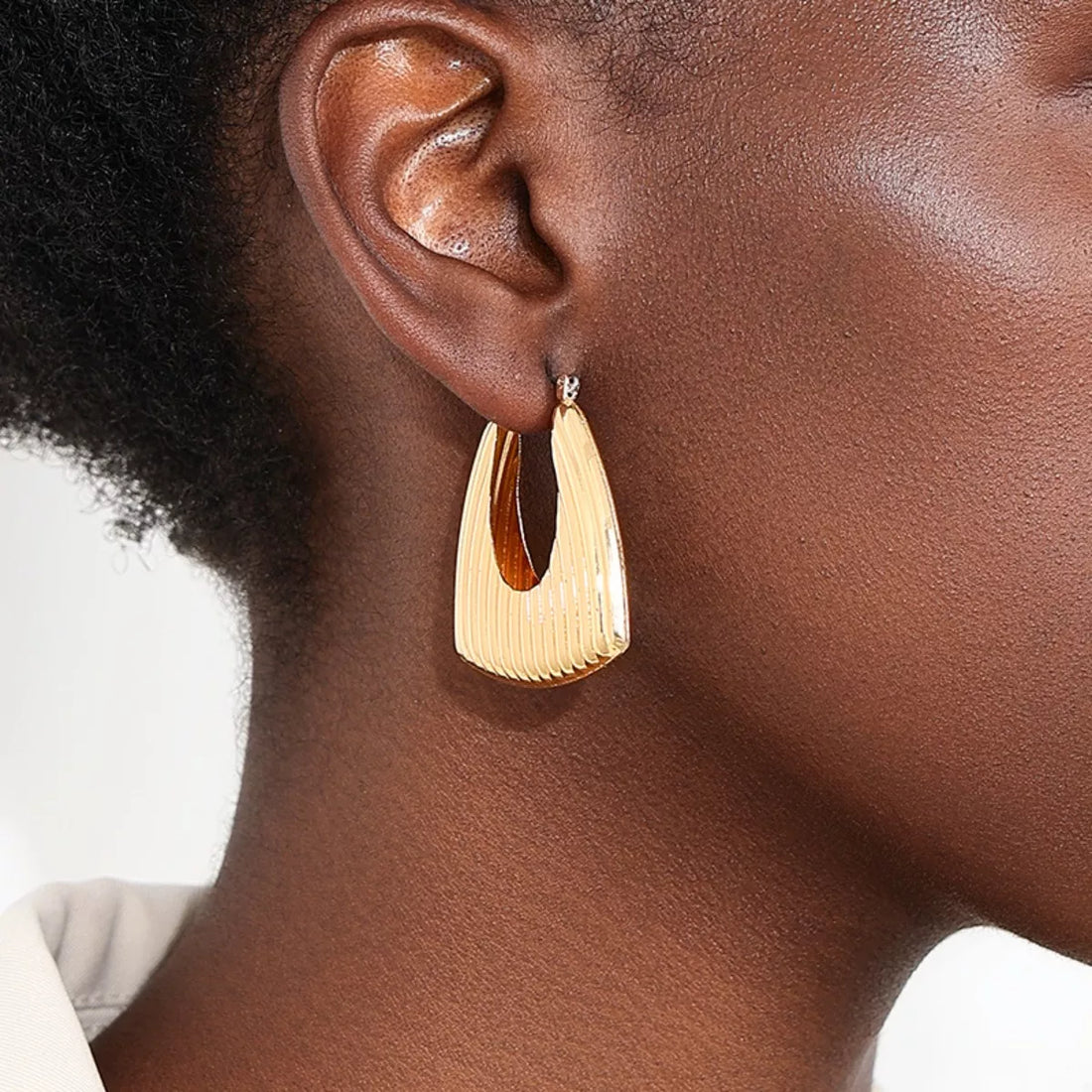 18K Gold-Plated Ribbed Triangular Hoop Earrings
