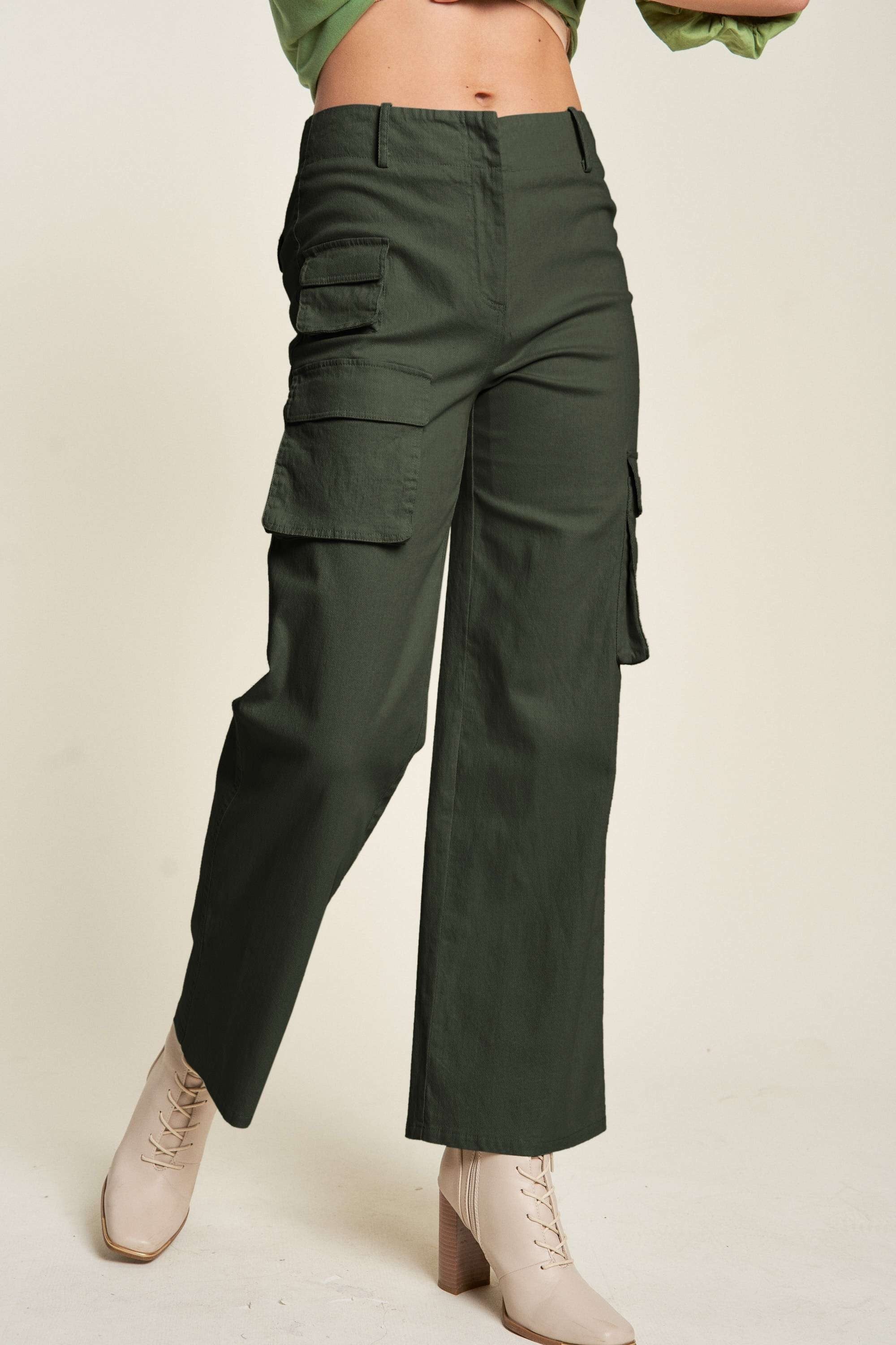 Flap Pocket Mid Rise Cargo Pants are stylish and functional bottoms with flap pockets for added detail and practicality. Featuring a mid-rise waist, these pants offer a flattering fit that sits comfortably on the hips. The flap pockets provide a trendy utilitarian touch, perfect for keeping small essentials secure. Made from durable materials like cotton or twill, these cargo pants are suitable for everyday wear. Pair them with a casual top for a versatile and on-trend look.