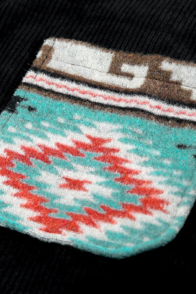 Pocketed Geometric Collared Neck Shacket