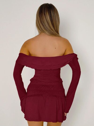 Twisted Ruffled Off-Shoulder Long Sleeve T-Shirt